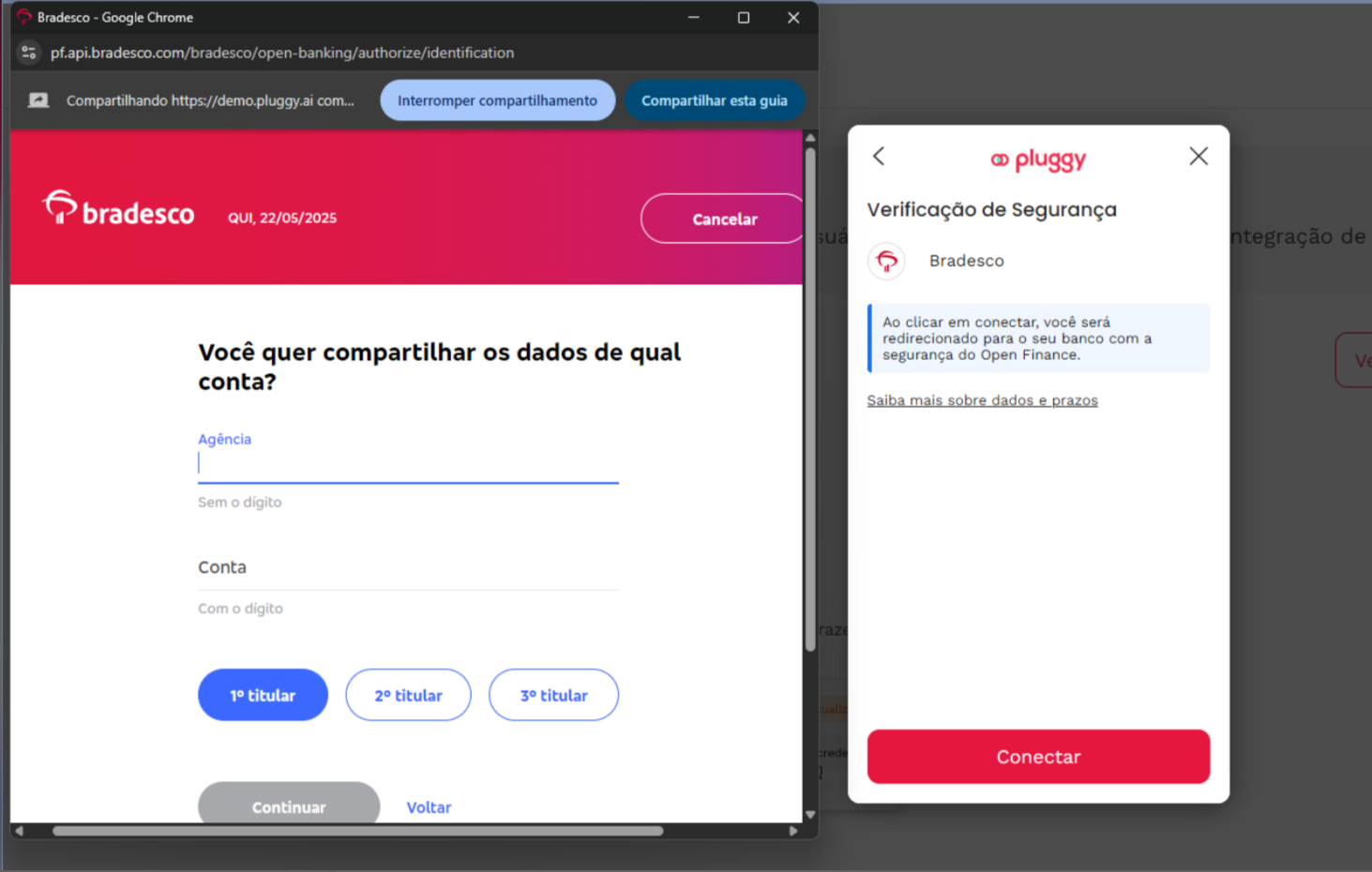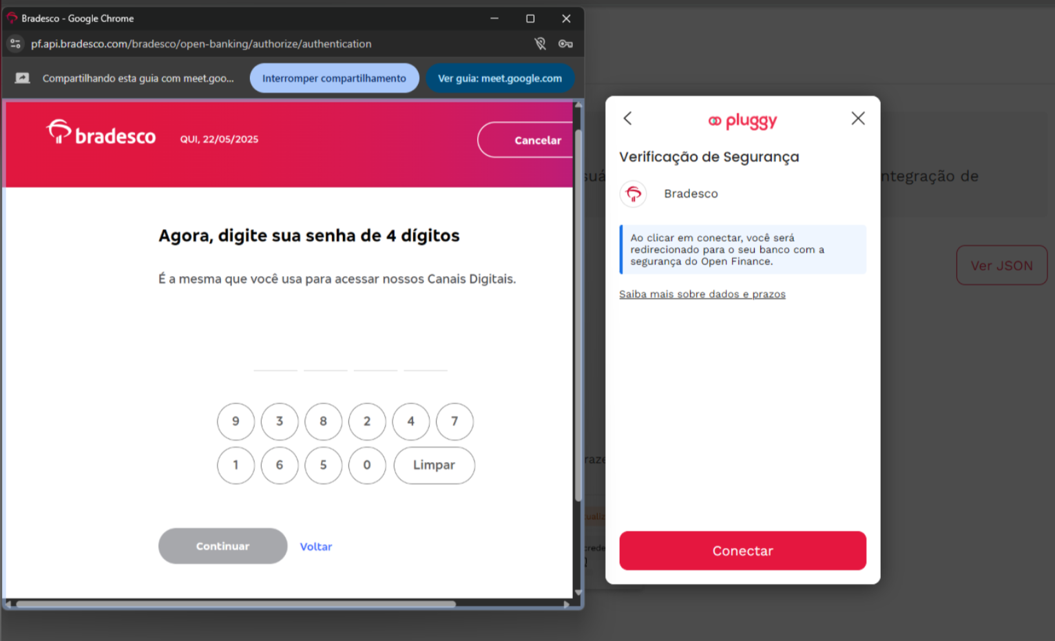Na tela de conexão com o Bradesco: