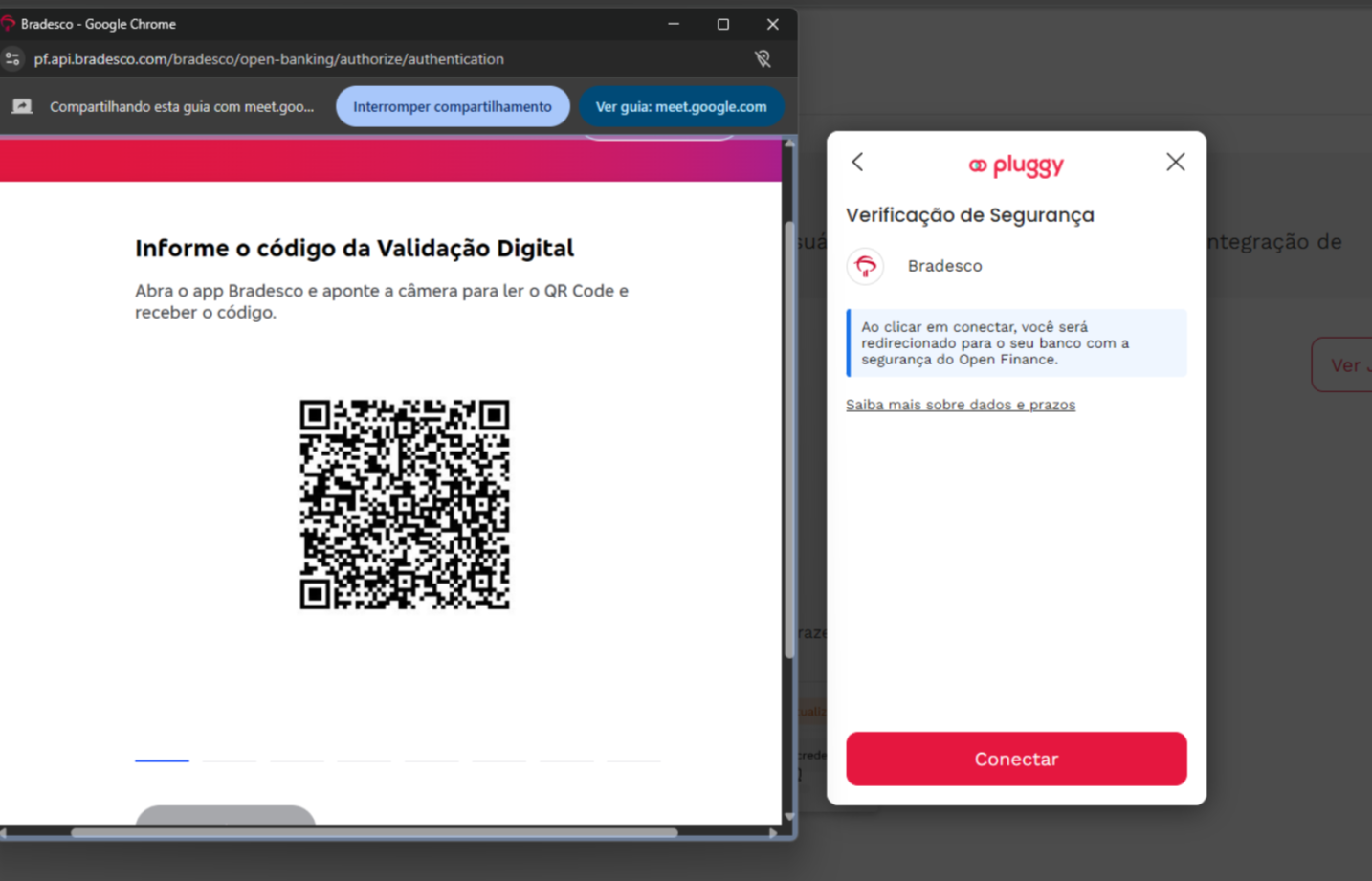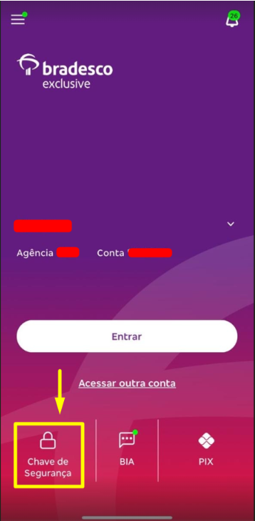Para realizar a conexão com sucesso é preciso que tenha o aplicativo do Bradesco em seu celular para gerar a chave de segurança.