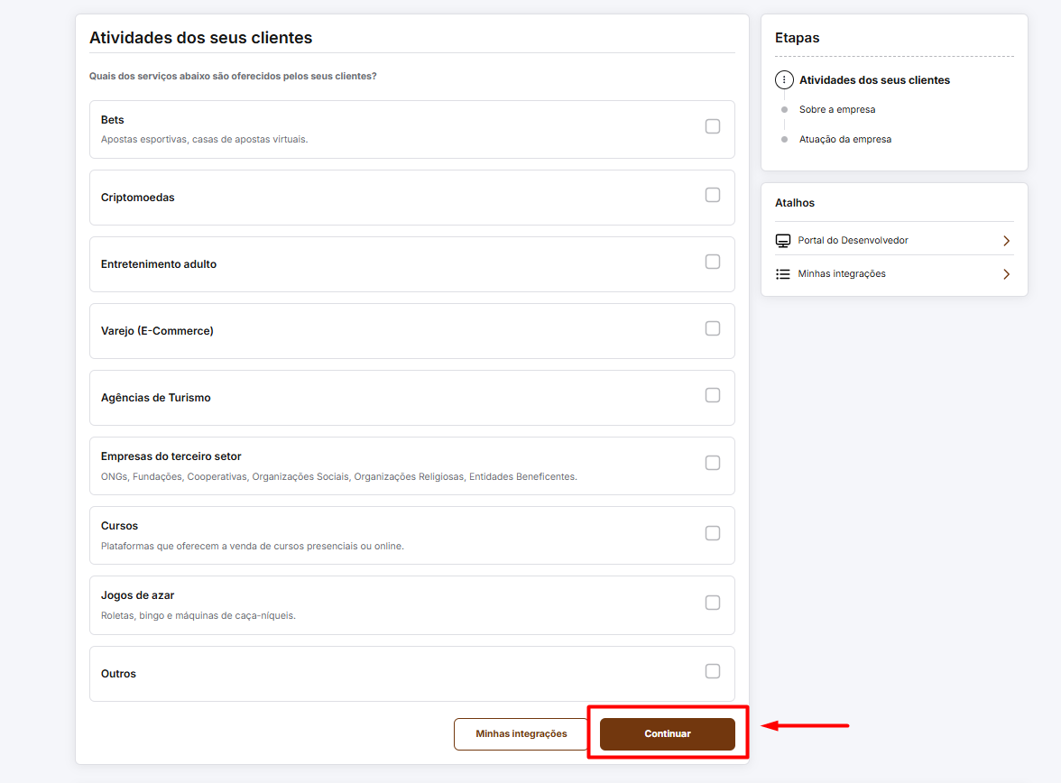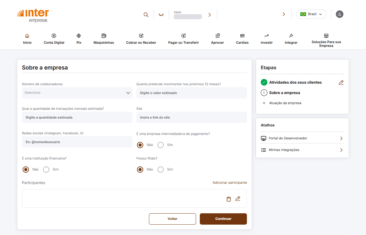 Esse formulário é utilizado pelo Banco Inter para conhecer melhor o uso da integração.