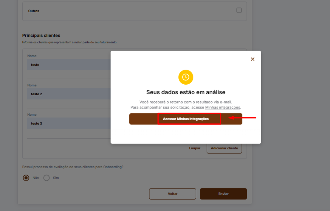 Clique em: Acessar minhas integrações