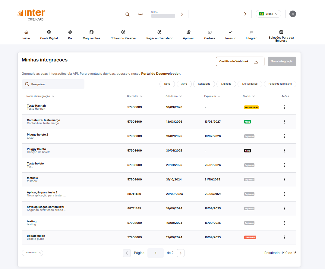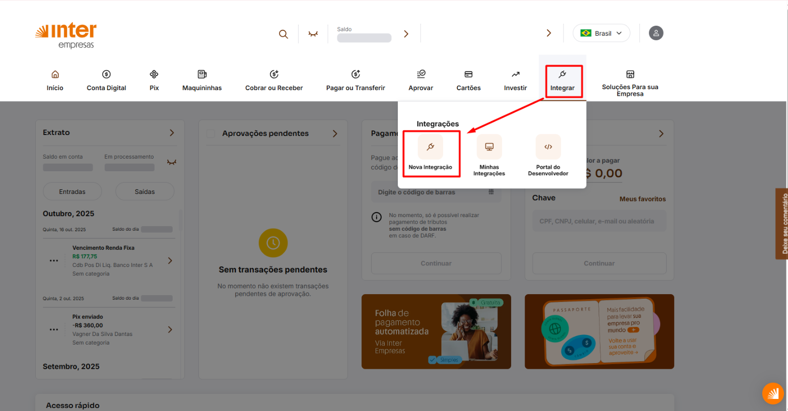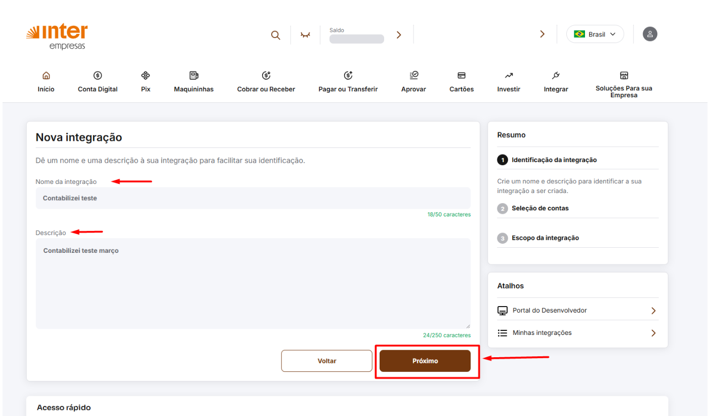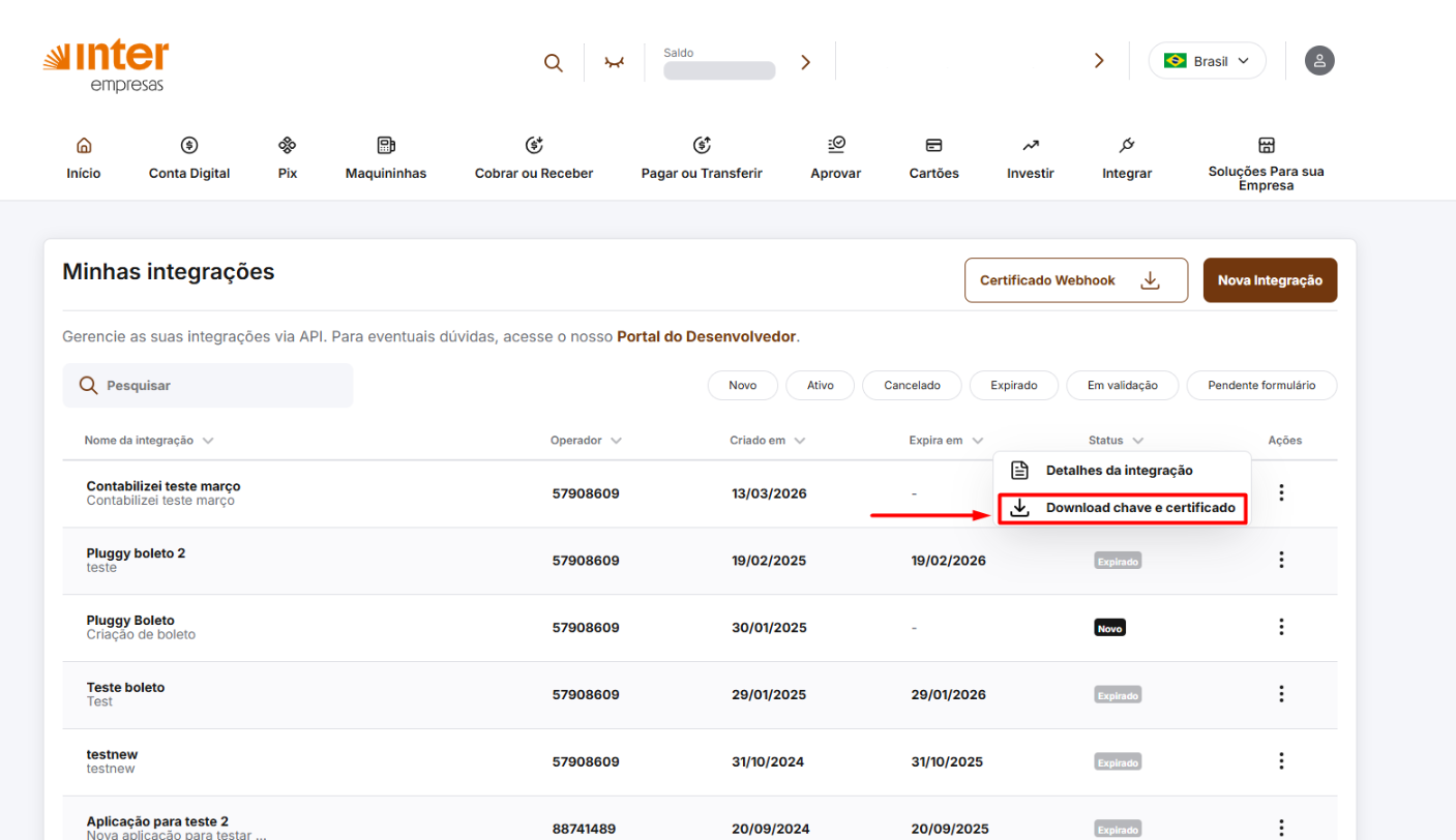 Como criar a integração no Banco Inter