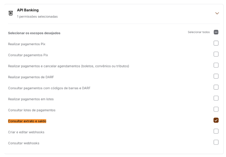 Caso queira emitir boletos através da API, selecione também: